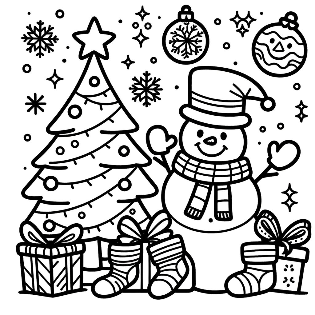 크리스마스 트리 눈사람 색칠공부 도안 이미지